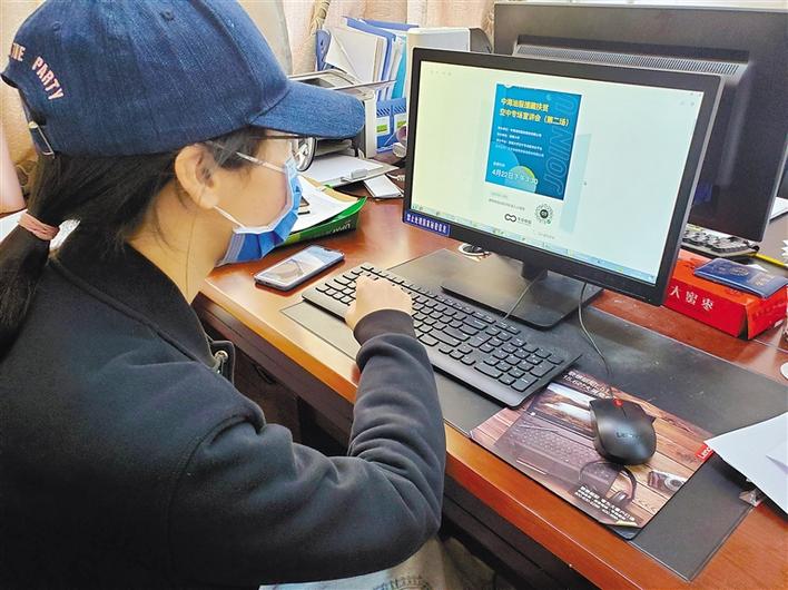 圖為西藏大學2016級思想政治教育班的學生李廣菊通過網絡觀看中海油公司組織召開的援藏扶貧空中專場宣講會。記者 潘璐 攝