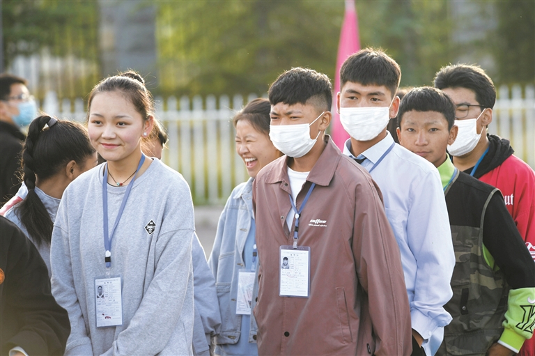 當(dāng)日上午8時,考生統(tǒng)一乘坐拉薩市公交公司高考愛心接送車來到拉薩中學(xué)考點。在疫情防控常態(tài)化背景下,考生手拿準(zhǔn)考證、身份證,戴著口罩,排隊測量體溫之后,有序進(jìn)入考場。為應(yīng)對突發(fā)狀況,考點外設(shè)置了隔離區(qū),并有醫(yī)療人員駐守。參加高考的考生之間也互相加油打氣,考生拉巴頓珠說:“祝愿大家都能好好發(fā)揮,考上自己心儀的學(xué)校。”