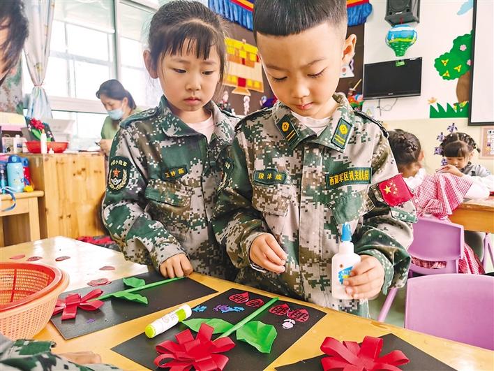 圖為教師節(jié)來臨之際,西藏軍區(qū)機關(guān)幼兒園的學生為老師制作節(jié)日祝??ㄆ?。記者 王莉 攝