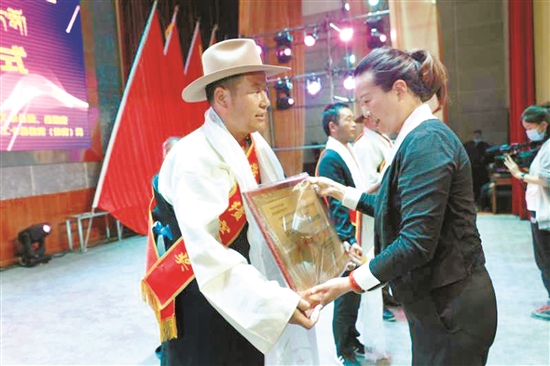 圖為墨竹工卡縣相關負責人為受表彰者頒獎。 拉薩融媒通訊員 洛 克攝