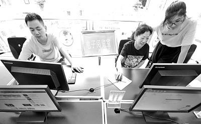 湖北襄陽高新區(qū)東風(fēng)社區(qū)電子閱覽室為居民提供免費線上閱讀服務(wù)。新華社發(fā)