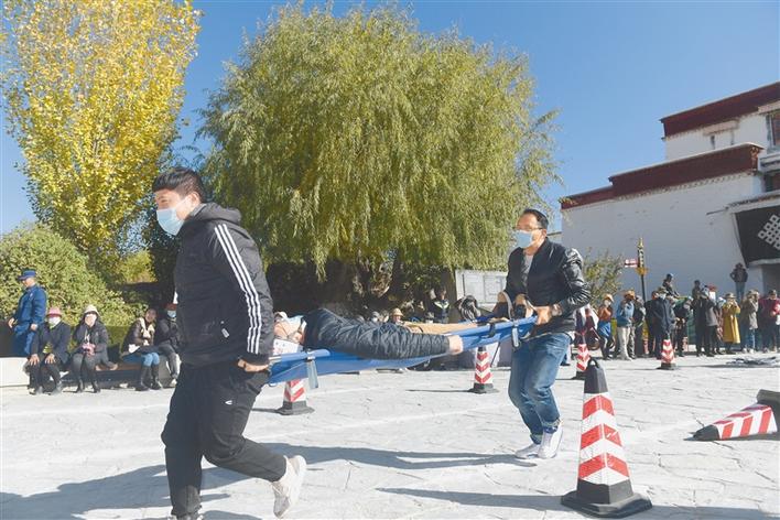 圖為11月9日,布達(dá)拉宮管理處工作人員正在進(jìn)行火場救援比賽。