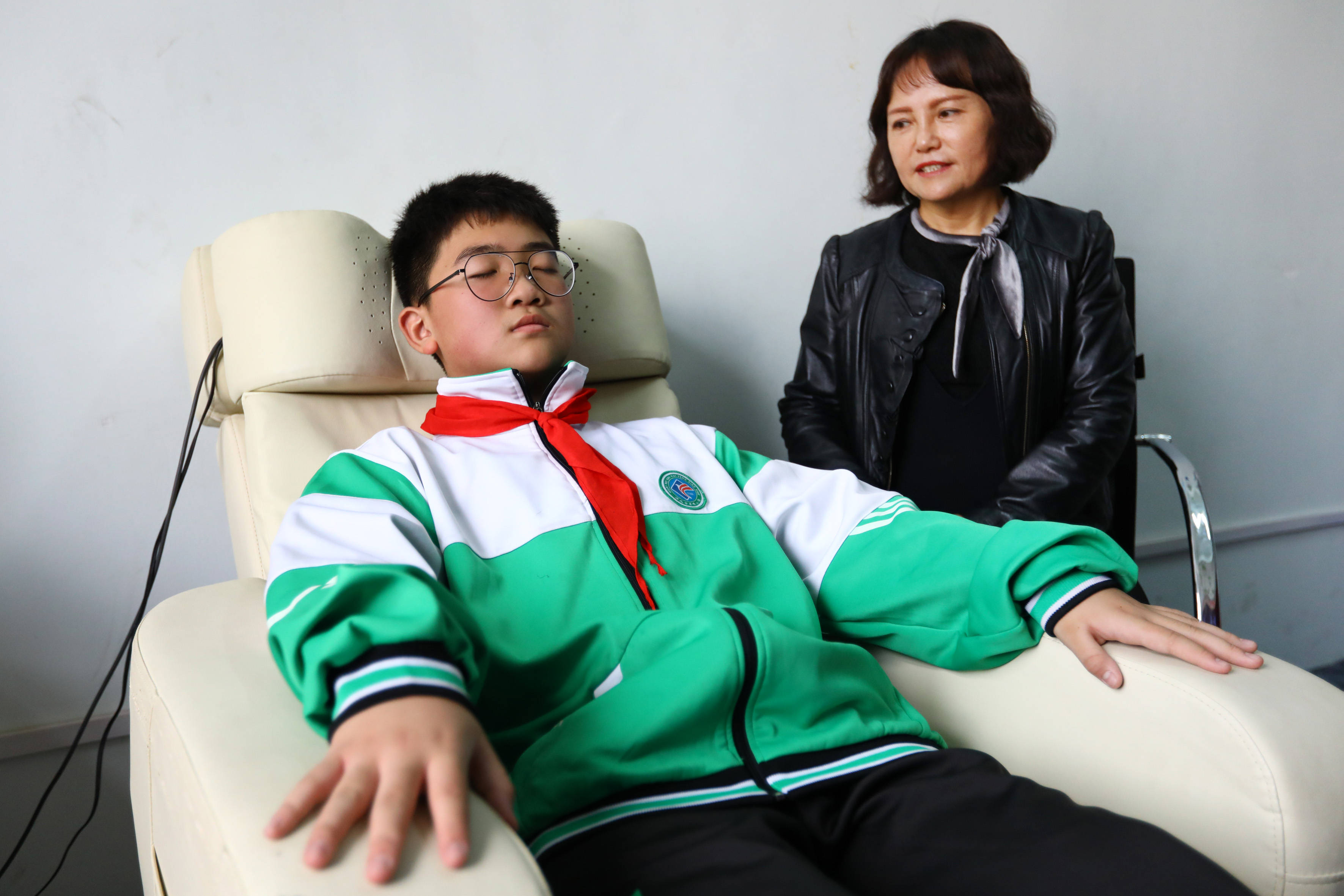 11月15日,淮北市的小學(xué)生在相山區(qū)未成年人心理健康輔導(dǎo)站音樂室聽音樂放松身心。