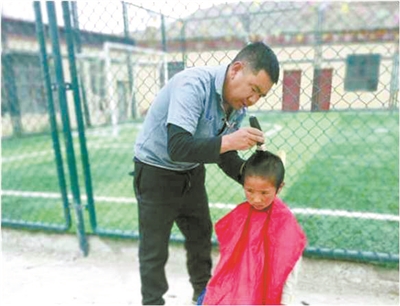 才旦多吉每?jī)芍芙o學(xué)生洗一次澡,每個(gè)月給他們理一次發(fā)。他自己買了理發(fā)工具,研究怎樣剪出孩子們喜歡的發(fā)型,一開(kāi)始理出的頭發(fā)總是不整齊,想給學(xué)生做個(gè)洋氣的發(fā)型,也總是做得奇形怪狀。后來(lái)理發(fā)的次數(shù)多了,水平就提升了。才旦多吉笑稱自己是“鄉(xiāng)村版的托尼老師”。