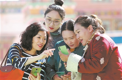 下課了,桑丁卓瑪(左二)和學(xué)員一起,與授課專家、北京市第十八中學(xué)英語高級教師谷月鳳(左一)互加微信,以便培訓(xùn)結(jié)束后還能夠繼續(xù)向?qū)<艺埥獭⑴c專家交流。