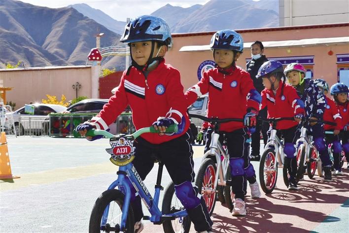 2020年西藏自治區(qū)“體育項目進校園”活動-兒童滑步車項目17日在拉薩市實驗幼兒園本部園區(qū)舉行,現(xiàn)場幼兒園的孩子們在教練的指導下學練滑步車。[詳細]
