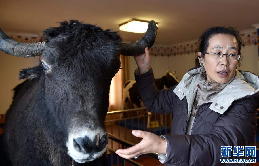 2019年2月28日,在西藏自治區(qū)農(nóng)科院畜科所,姬秋梅利用牦牛標本講解牦牛生長特點。1988年,姬秋梅從西藏民族學(xué)院(現(xiàn)西藏民族大學(xué))農(nóng)牧系畢業(yè),被分配到西藏自治區(qū)農(nóng)科院畜科所,從事牦牛研究工作,后在中國科學(xué)院地理科學(xué)與資源研究所繼續(xù)深造,并出國留學(xué)獲得博士學(xué)位,2002年歸國。新華社記者 覺果 攝