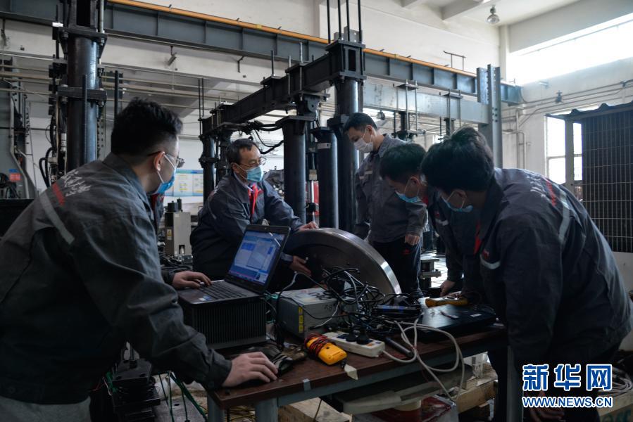 2月9日,北京交通大學教師和學生在結(jié)構(gòu)強度檢測實驗室一起研討高速列車輪軸結(jié)構(gòu)可靠性。新華社記者 徐欽 攝