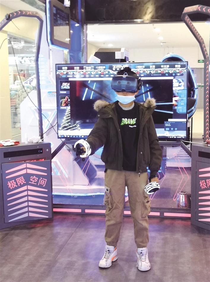 圖為寒假期間,一個小男孩正在體驗VR游戲的樂趣。 鄭璐 袁海霞 攝