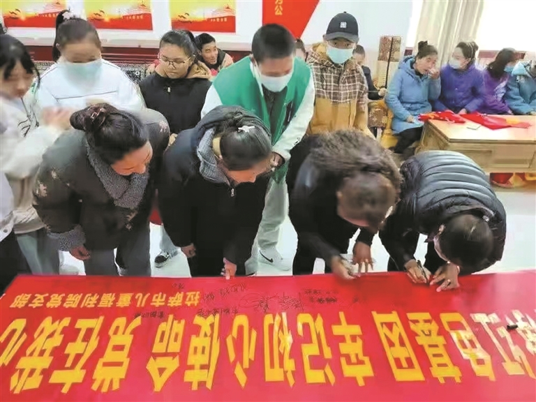 圖為拉薩市兒童福利院組織干部職工和在院孤兒簽名承諾積極踐行社會主義核心價值觀。(拉薩市兒童福利院供圖)