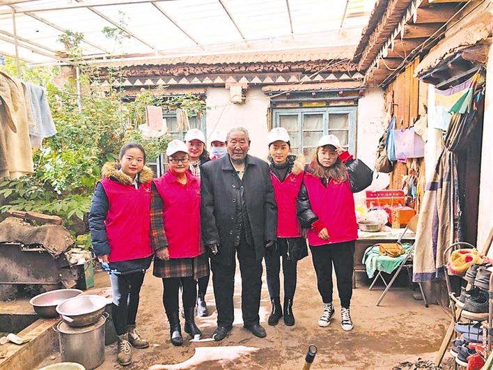 圖為志愿者為獨居老人打掃衛(wèi)生后和老人合影。 周婷婷 攝