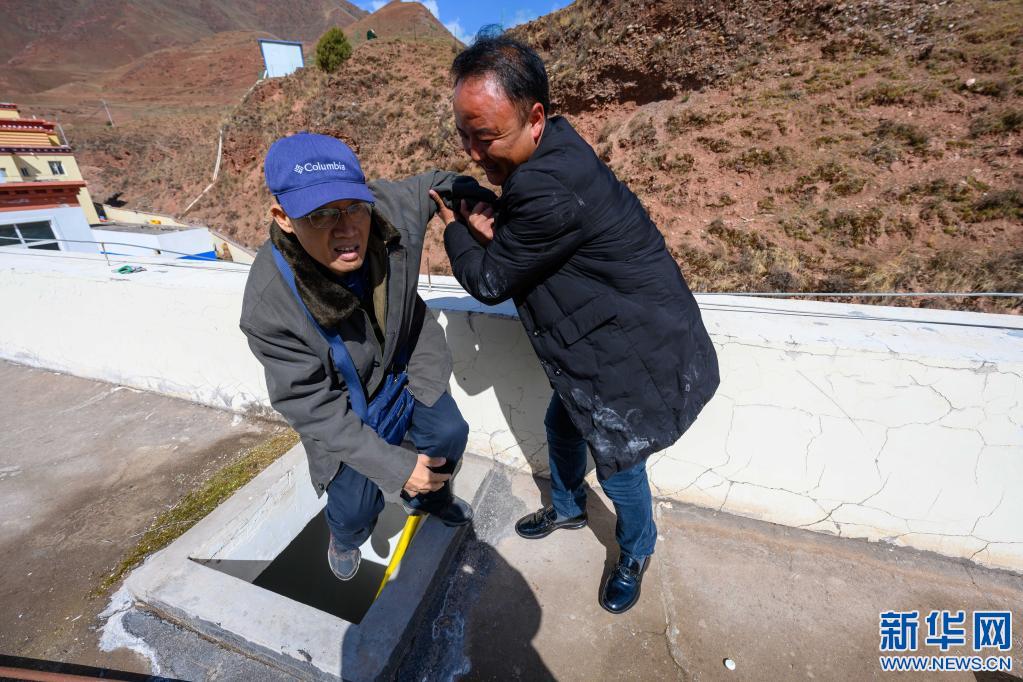 5月3日,在西藏昌都市類烏齊縣吉多鄉(xiāng)小學,李純民(中)在吉多鄉(xiāng)小學學生食堂樓頂,監(jiān)督太陽能熱水器的維修工作。2014年至2020年,“齊興”助學獎勵基金通過多種方式,籌集資金200多萬,為類烏齊縣12所鄉(xiāng)鎮(zhèn)小學安裝太陽能熱水器和多媒體教學一體機。新華社記者 劉金海 攝