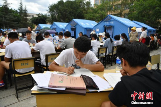 5月22日,云南省大理州漾濞縣漾濞一中的高三學生在露天“教室”備戰(zhàn)高考。5月21日,當?shù)剡B發(fā)多次地震,最高6.4級。 中新社記者 劉冉陽 攝