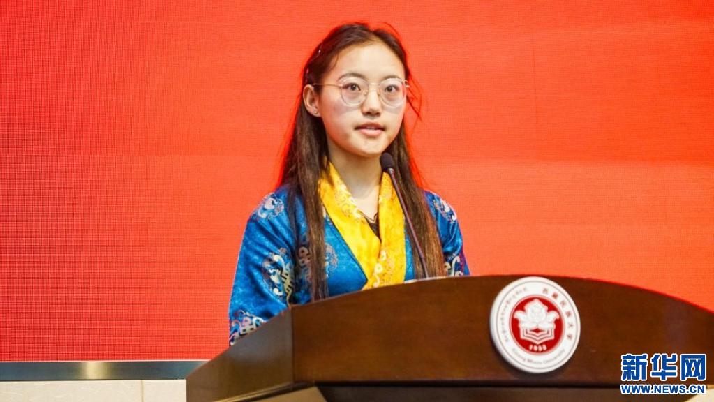 2020年度寶翔勵志獎學金獲得者貢吉旺姆在表彰大會上發(fā)言