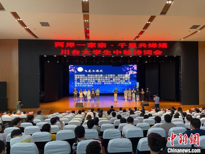 在“兩岸一家親 千里共嬋娟”川臺大學(xué)生中秋詩詞會上,臺灣學(xué)生與四川工商學(xué)院學(xué)生代表一對一結(jié)對,進(jìn)行了做月餅、猜字謎和飛花令等交流活動。在飛花令環(huán)節(jié),臺灣學(xué)生代表和四川工商學(xué)院代表以“月”為關(guān)鍵詞開始吟詩作對,一句句與“月”相關(guān)的詩詞營造了濃濃的節(jié)日氛圍。