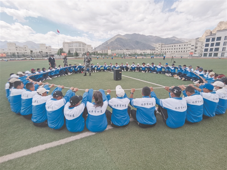 圖為動力圈游戲環(huán)節(jié),同學(xué)們合力轉(zhuǎn)圈。拉薩融媒記者 郝奕凝攝