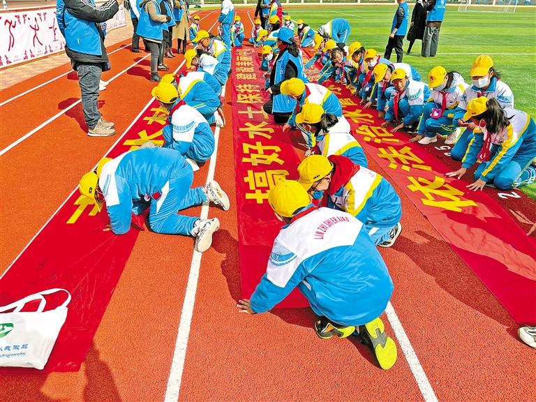 圖為林芝市第二小學(xué)的學(xué)生們在愛護水土資源宣傳標語上簽名。記者 張猛 攝