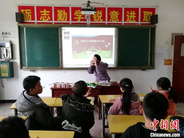 圖為西安局集團(tuán)公司職工孟露深入楊莊小學(xué),為當(dāng)?shù)貙W(xué)生開(kāi)展支教工作。 楊岳鵬 攝