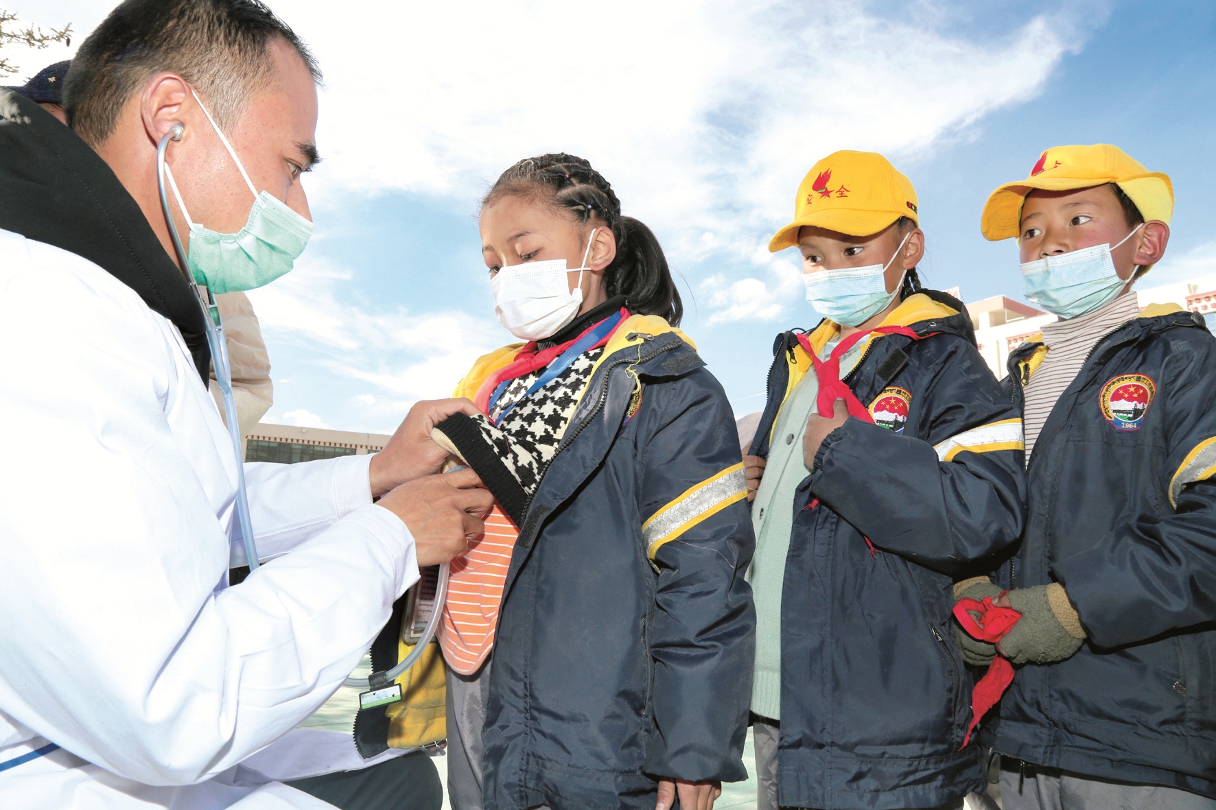 圖為南京醫(yī)科大學(xué)第二附屬醫(yī)院醫(yī)生在為小學(xué)生開展先心病篩查。 通訊員 德吉卓嘎攝
