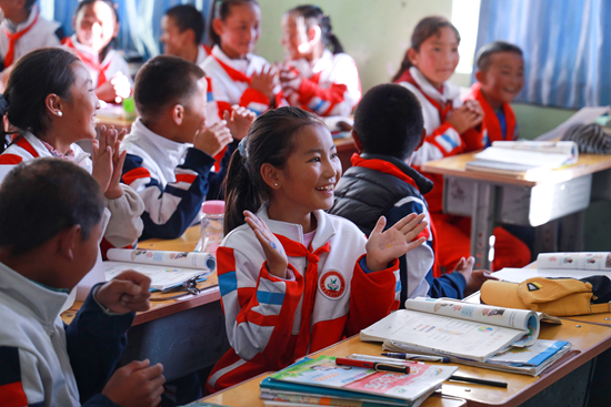 充分了解當?shù)亟虒W情況和學生需求后,關愛隊師生為藏族孩子們定制了英語、音樂、素質(zhì)拓展等一系列特色課程。