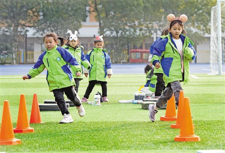 圖為1月11日,在合肥市夢園小學(xué)教育集團(tuán)楓林路學(xué)校,學(xué)生在參加美術(shù)結(jié)合體育的測評項(xiàng)目。新華社記者 周牧 攝