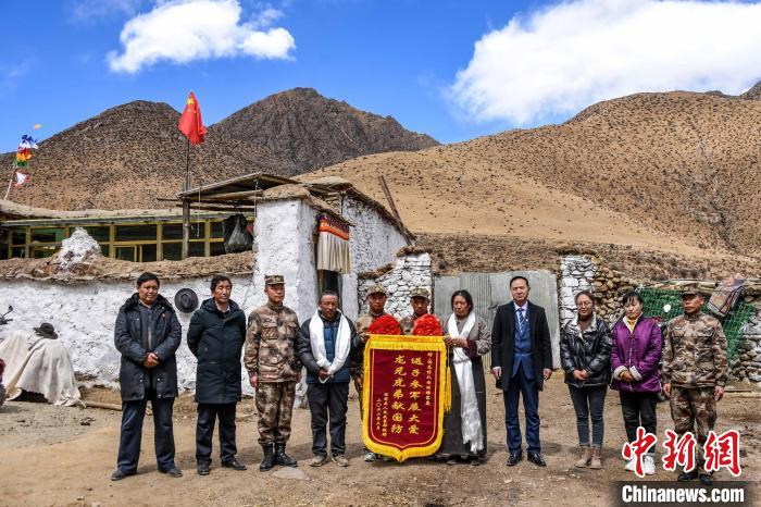 圖為拉薩市林周縣武裝部和退役軍人事務(wù)局慰問旁多鄉(xiāng)入伍兄弟?!≈斐?攝