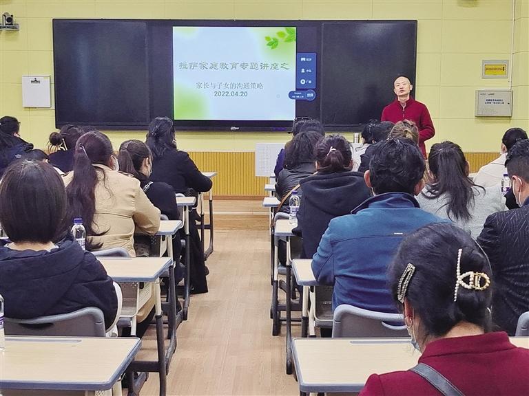 4月20日,拉薩市教育局在拉薩市第八中學(xué)開展了《家長與子女的溝通策略》講座,本次講座以線上和線下同步進(jìn)行的方式開展。據(jù)悉,當(dāng)天在線學(xué)習(xí)人數(shù)達(dá)1853人,近期,還將開展以《如何幫助青春期孩子插上夢(mèng)想的翅膀》為主題的線下講座以及“親子游館”活動(dòng)。通過系列活動(dòng),幫助家長掌握科學(xué)的家庭教育方法,增進(jìn)親子溝通和交流,提高家庭育人的能力。