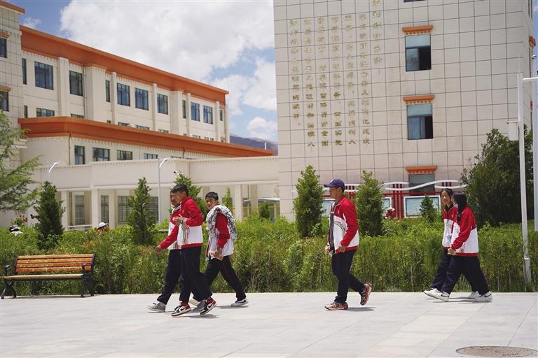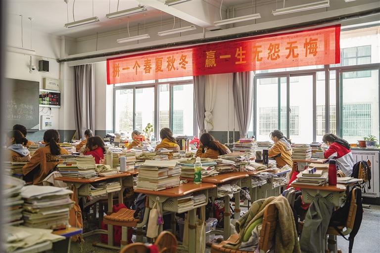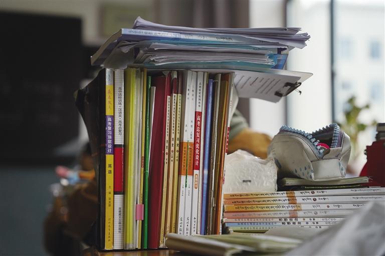 走進高三年級教學樓,走廊里不時傳來朗朗讀書聲,每一個角落都充斥著同學們?yōu)榍啻汉蛪粝電^力拼搏的氣息。在高三(9)班的教室里,學生們正在全神貫注地聽課,時而看課本、時而做筆記,神情認真且專注。桌面上堆積的高高的書籍、練習冊和教室墻上掛著的高考倒計時牌都在時刻提醒著同學們,高考離他們越來越近了?!艾F(xiàn)在是高考復習的關鍵時期,同學們學得很認真,班里的學習氛圍特別好,大家互相幫助、共同進步。希望我們通過自己的努力,考上理想的大學,實現(xiàn)自己的夢想?!睂W生斯朗卓瑪告訴記者。