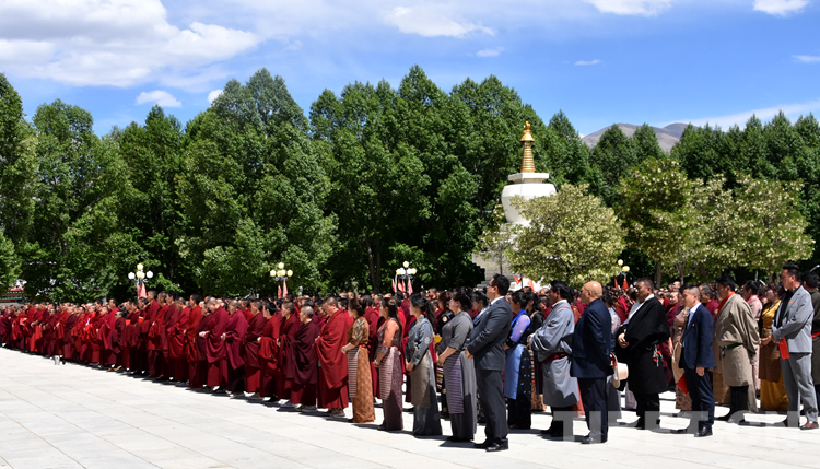 西藏自治區(qū)黨委常委、統(tǒng)戰(zhàn)部部長,區(qū)政協(xié)黨組副書記、副主席嘎瑪澤登出席儀式并勉勵(lì)經(jīng)師和學(xué)員們弘揚(yáng)愛國愛教、護(hù)國利民的優(yōu)良傳統(tǒng),切實(shí)增強(qiáng)參加“三個(gè)意識”教育的責(zé)任感、使命感,爭當(dāng)“學(xué)”的典型和“做”的楷模。
