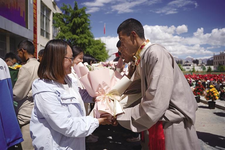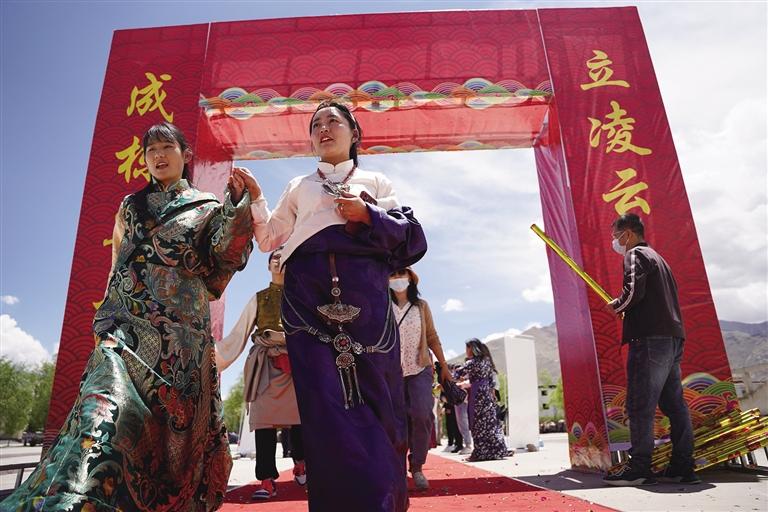 走進拉薩市第四高級中學(xué),校園里每個角落都流露出喜悅與溫馨,同學(xué)們身著色彩鮮艷的民族傳統(tǒng)服裝,帶著自信的笑容,在父母與老師的陪伴下,走過“成人門”,踏上“成才路”,通向“成功門”。此時的他們意氣風(fēng)發(fā),青春的面龐如同朝陽一般閃爍著光芒,滿懷豪情地憧憬精彩的人生。高三學(xué)生朗色占堆告訴記者:“今天是特別值得紀(jì)念的日子,以后我們都是成年人了,會勇于承擔(dān)責(zé)任,對自己的行為負(fù)責(zé),努力成為一個有知識、知感恩、有責(zé)任、有擔(dān)當(dāng)?shù)男聲r代新青年?!?/p>
