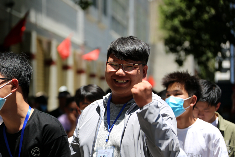 圖為拉薩中學(xué)考點(diǎn)考試結(jié)束后考生們自信滿滿走出考場 攝影:王佳豪
