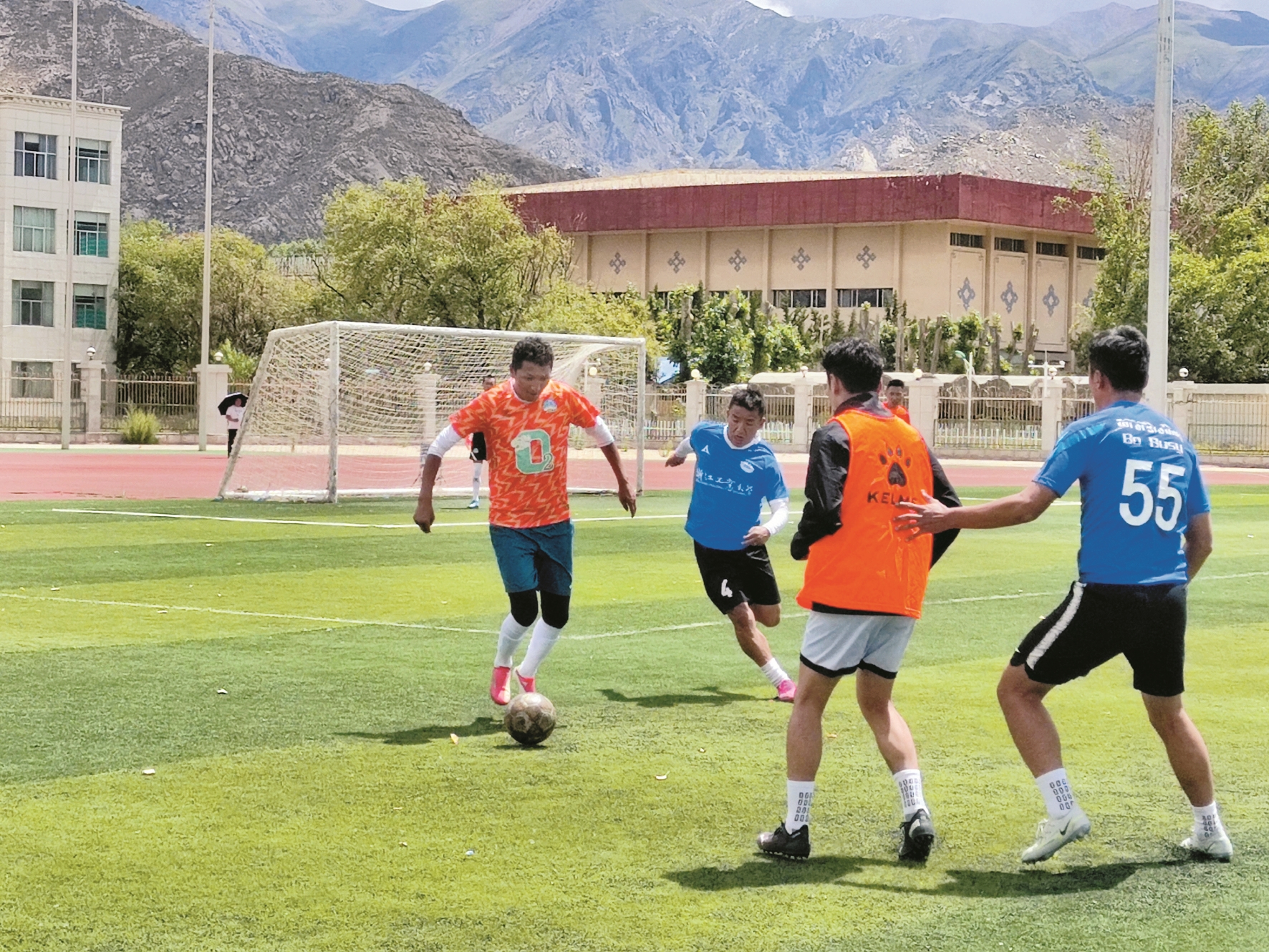 日前,由拉薩市足球協(xié)會舉辦的“喜迎二十大、永遠跟黨走”十一人制足球邀請賽在自治區(qū)競技體育中心足球場舉行首場比賽。