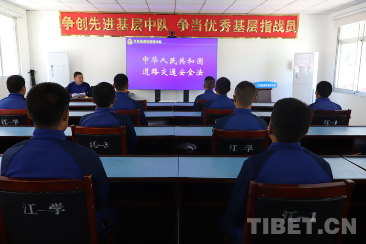 圖為昌都市森林消防支隊江達(dá)縣中隊指戰(zhàn)員學(xué)習(xí)《中華人民共和國道路交通安全法》