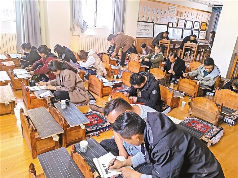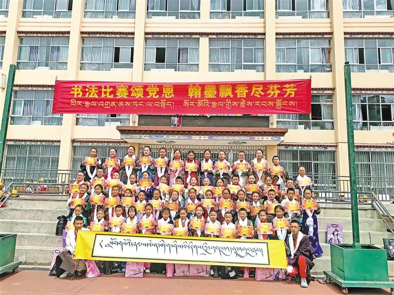 “我們學校組織過幾次書法比賽,還選取了一些較好的作品裝訂成書,發(fā)放到每個班級供學生們參考。這樣一來,很多學生在書上看到別人的照片和書法作品時,能夠激發(fā)他們對書法的興趣和書寫的積極性?,F(xiàn)在,參賽的學生越來越多了。”娘熱小學副校長拉巴介紹,在教育改革以及學校“雙減”工作和課后服務(wù)的背景下,娘熱小學積極探索,結(jié)合本校實際情況,開設(shè)了藏戲、藏文書法、校園足球等三大特色板塊。2019年,拉薩市文聯(lián)、曲藝家協(xié)會以及書法家協(xié)會分別授予娘熱小學曲藝、舞蹈、藝術(shù)教育培訓基地和書法教育培訓基地稱號,極大提高了師生的學習積極性。