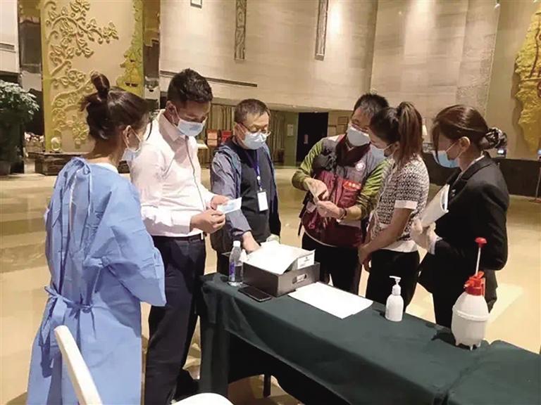林芝市旅發(fā)局工作人員前往酒店了解滯留游客生活保障和防疫情況。圖由林芝市旅發(fā)局提供