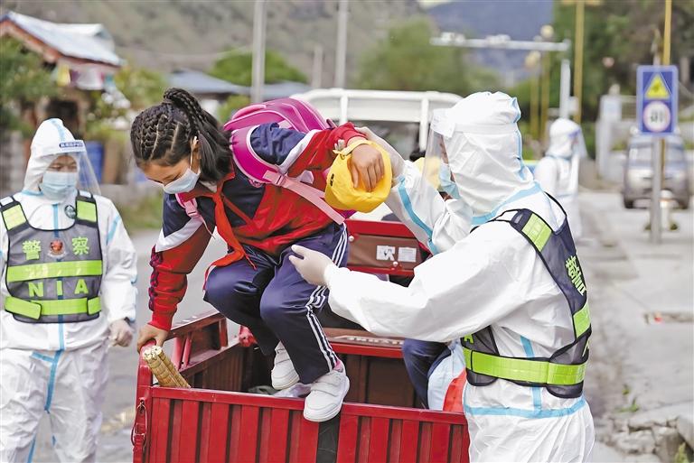 9月17日,林芝市米林縣派鎮(zhèn)中心小學(xué)開學(xué)的第一天,林芝邊境管理支隊派邊境派出所啟動“護(hù)校崗”工作機(jī)制,聯(lián)合學(xué)校工作人員開展護(hù)學(xué),實行“一警一帶”,家長即送即離,由民警負(fù)責(zé)將住校學(xué)生行李送往宿舍,盡量減少人員接觸,確保入學(xué)有條不紊進(jìn)行。
