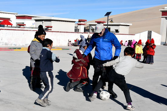體育教師施剛強在課堂上注意到,藏族孩子比較害羞、靦腆,為了讓學(xué)生們活躍起來,他在課上安排了各種團體游戲和比賽,讓每個孩子都能在體育活動中發(fā)揮優(yōu)點、享受快樂。