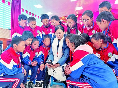 以藍(lán)天為幕布,以學(xué)校為舞臺(tái),即使天氣寒冷也擋不住大家聆聽(tīng)“精神食糧”的熱情?!斑^(guò)去,學(xué)校只有兩排小平房,土坯墻打的黑板,冬天取暖還用干牛糞呢!現(xiàn)在可不一樣了,現(xiàn)代化的教學(xué)設(shè)備、高水平的師資力量,高質(zhì)量的教學(xué)模式,讓牧民們的理念發(fā)生了根本性變化,越來(lái)越重視孩子的教育了?!倍泛笏骷乃拗菩W(xué)校長(zhǎng)萬(wàn)瑪項(xiàng)青感慨。
