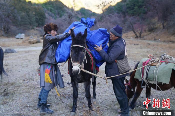 正值寒冬,丹增培楚牽著騾馬隊從香格里拉高原牧場的群山之間緩緩走來,馬幫的銅鈴發(fā)出叮叮當當?shù)臉氛隆?/p>