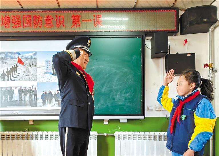 拉薩市城關(guān)區(qū)拉魯小學(xué)以“弘揚(yáng)紅色文化 增強(qiáng)國(guó)防意識(shí)”為主題上好“開(kāi)學(xué)第一課”。這是學(xué)生與宣講員索朗達(dá)杰互動(dòng)。記者 袁海霞 鄭璐 攝