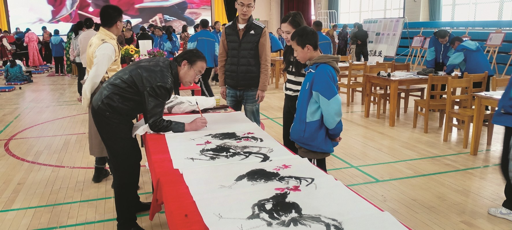 活動為拉薩市柳梧初級中學(xué)愛好書法的師生提供了一個展現(xiàn)自我價(jià)值的平臺,為充分展現(xiàn)中國書畫藝術(shù)魅力、繼承和弘揚(yáng)傳統(tǒng)的國粹文化藝術(shù),藝術(shù)家們揮毫潑墨,現(xiàn)場演繹國畫和書法經(jīng)典,以提升廣大師生的藝術(shù)修養(yǎng)和審美情趣,激發(fā)大家研學(xué)書法的興趣和愛好。
