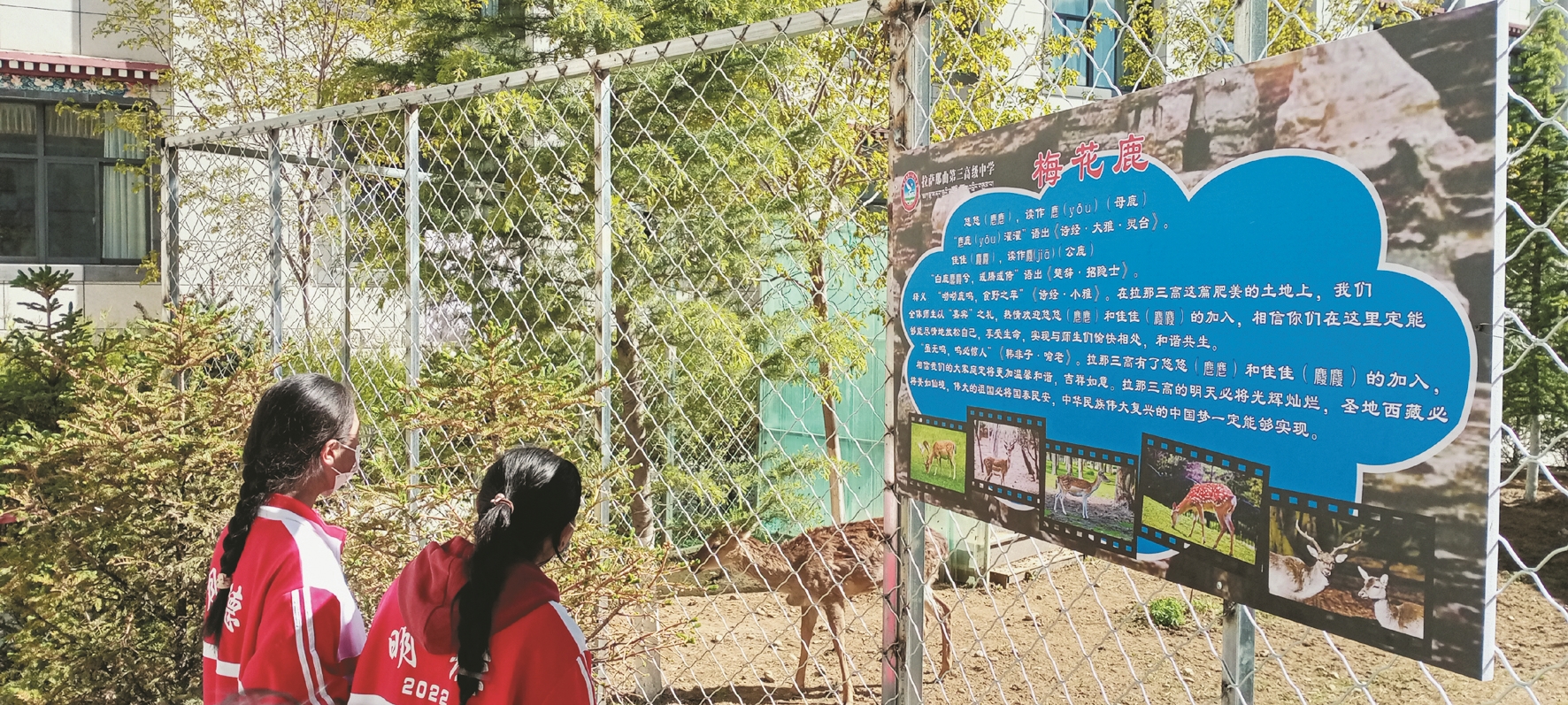 “梅花鹿和小綿羊來到我們學校后,我和同學不開心時經常來看它們,看著它們調皮可愛的模樣,情緒很快就得到調理?!睂W生仁青卓瑪說。