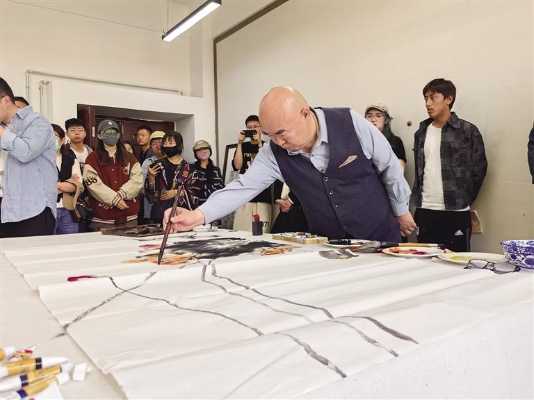 6月5日,由國家藝術(shù)基金支持,北京畫友藝術(shù)交流中心主辦的《意境》唐詩主題畫展在西藏大學(xué)藝術(shù)學(xué)院成功舉辦。此次主題畫展有賈平西、劉曦林、張松等20余位藝術(shù)家作品參展。中國藝術(shù)研究院文學(xué)藝術(shù)院專職畫家、國家一級美術(shù)師林維與南開大學(xué)藝術(shù)與美學(xué)研究院副院長、博士生導(dǎo)師尹滄?,F(xiàn)場揮毫潑墨、即興發(fā)揮,給西藏大學(xué)獻上了兩幅圖。