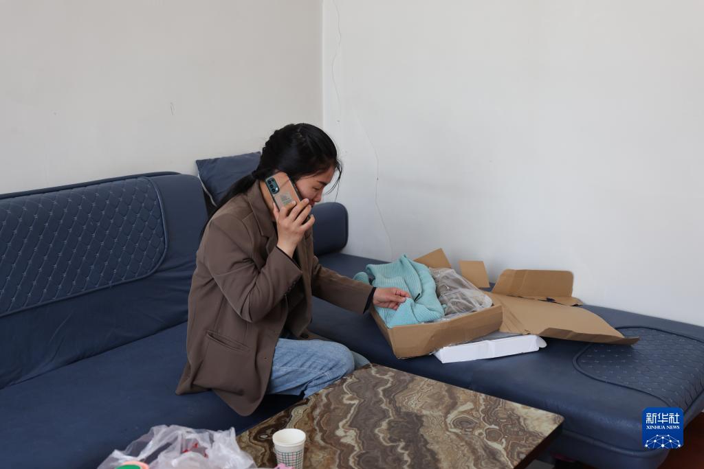 收到媽媽寄來(lái)的衣物后,潘紅培在與媽媽通話。(受訪者供圖)