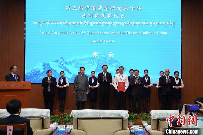8月14日,第五屆中國藏學(xué)研究珠峰獎頒獎儀式在北京舉行,《元以來西藏地方與中央政府關(guān)系研究(上下冊)》獲特別獎。 中新社記者 崔楠 攝