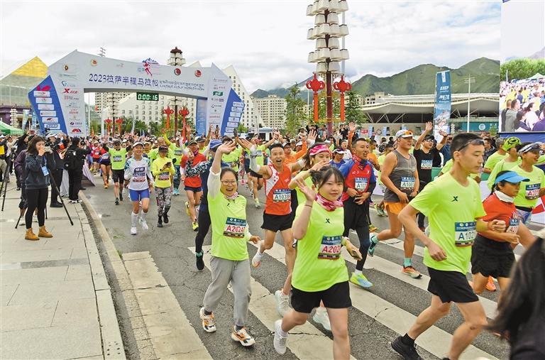 8月27日,2023拉薩半程馬拉松在拉薩市鳴槍開(kāi)跑。賽事設(shè)置半程馬拉松、競(jìng)速跑(10.520公里)、健康跑(5公里)三個(gè)組別。來(lái)自全國(guó)各地的約4000名馬拉松愛(ài)好者參加比賽。經(jīng)過(guò)激烈角逐,索朗才仁和次仁措姆分別以1小時(shí)10分3秒和1小時(shí)23分48秒的成績(jī)撞線,雙雙衛(wèi)冕男、女子組半程馬拉松冠軍。