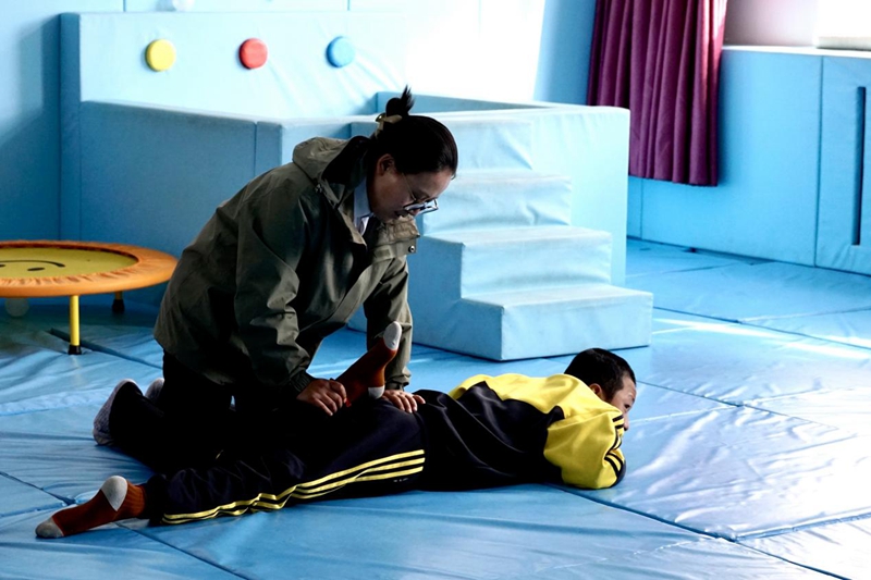 在海拔4500米的西藏那曲特殊教育學(xué)校里,傳來了一組充滿矛盾的聲音——輕揚(yáng)悠長(zhǎng)的純音樂和重重敲擊桌面的“咚咚”聲。
