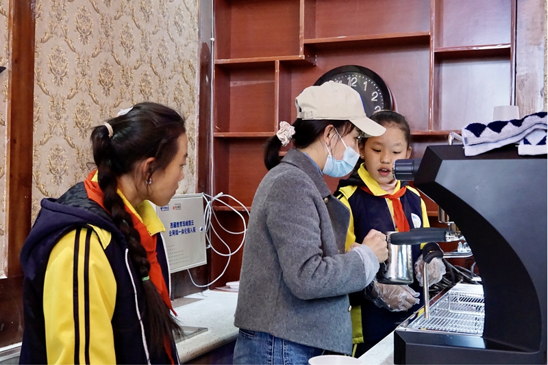 13歲的拉巴卓瑪和15歲的益西措姆正是體驗(yàn)職教班咖啡課的學(xué)生,她們相較于其他學(xué)生擁有更強(qiáng)的專注力和動(dòng)手能力,一天便能熟練操作咖啡機(jī)。在帶教老師次旦卓嘎看來,“她們雖然是學(xué)困生,但其實(shí)看上去和普通小孩沒有什么不同?!?/p>