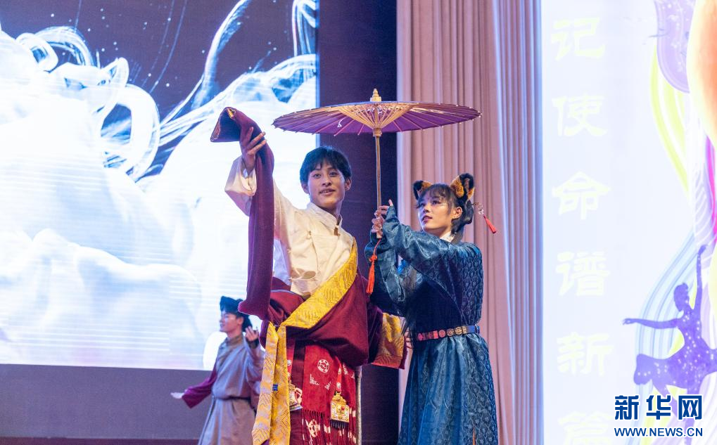 開幕式現(xiàn)場(chǎng)學(xué)生們正在表演服裝秀節(jié)目(9月21日攝)。丁增尼達(dá) 攝