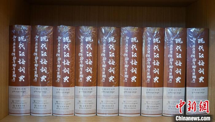 圖為中心內(nèi)擺放的《現(xiàn)代漢語詞典(漢藏詞匯對照)》書籍。馬銘言攝